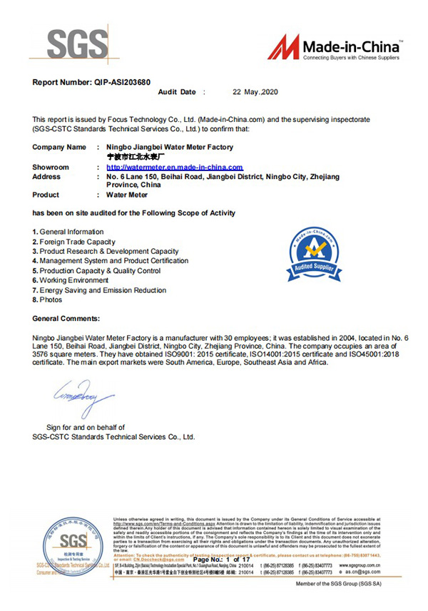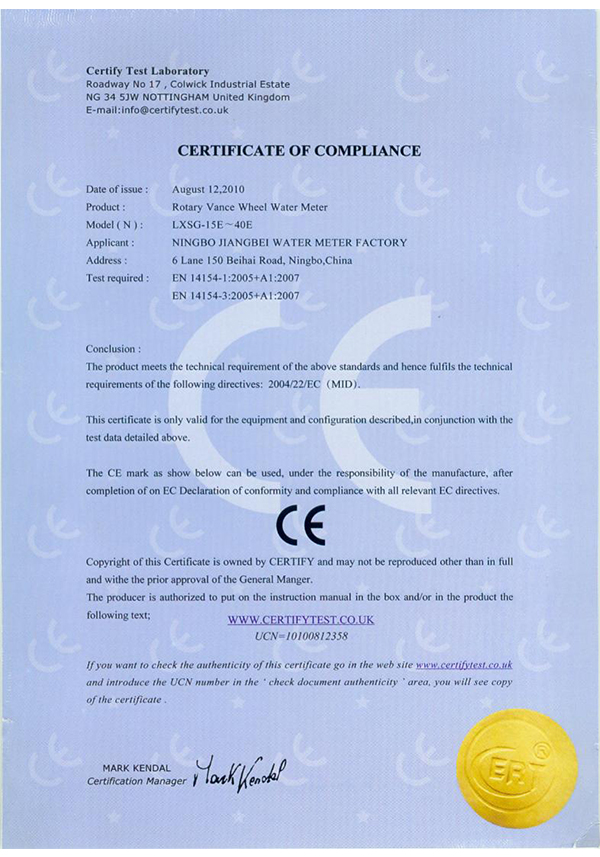 全國水表產品質量連續(xù)穩(wěn)定合格企業(yè)